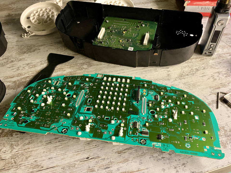 здоровья вновь прибывшим! в предыдущих сериях: ![]() Гольф переехал на подземный паркинг. весна уже на носу, а значит надо суетиться и допиливать косяки, которые не хотелось бы допиливать в сезон. один из косяков был с приборкой. так как он англичанка, то температура была в Цельсиях, а скорость была в милях. наивный пачафото нашел донорскую гти приборку, переставил шкалу, и получил: ![]() 70 по приборам, 109 по факту. это же не дело? правильно. поиски решения заняли пару лет. для начала обратился к Andrey-NA, получил ответ — старая приборка, не знаю, не думаю, может да, может нет, а может пошел я. потом по работе столкнулся с онлайн-программированием от Pashustic, обратился к нему — мудрые слова вроде «мальчик, теряйся». вагбратство 🤝 мое отдельное почтение, господа. дальше уже как договорился с добрым nk-pasha, даже отфоткал артикулы приборок: ![]() гти европа ![]() р32 англия но вдруг в Москву пришли снегопады, а с ними и AleXToM70, который успешно обкатал решение вместе с PavelEcho что для этого нужно было сделать? снять и разобрать приборку. херня делов. ![]() ![]() ![]() ![]() попутно устранил причину периодического угасания центрального дисплея — он тупо не был вщелкнут до упора. видимо житель туманного альбиона, или курвабобэр ковырялся в приборке и недопетрил до такой мелочи. ![]() ![]() разобрали? на самом деле это не обязательно, так как нужна малая плата, которая половинится лопаткой и откручиванием пары торксов на тыльной стороне ![]() но раз уж разобрали — детейлинг. ![]() прокладка! ![]() ![]() дальше нужна была прищепка и ноут на винде. здесь благодарность улетает iam-anatolich, который любезно сделал эту процедуру и отправил дамп Саше AleXToM70 ![]() день Х — установка и тесты. ![]() ![]() ![]() бинго! первая крутится в 40-50, а не как раньше. победа! ![]() или не совсем победа? ![]() размял косточки по паркингу, наметил дальнейшие планы, припарковал обратно. ![]() еще раз огромнейшая благодарность AleXToM70 и до новых встреч в эфире! |
